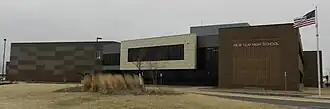 Due to budget cuts for school funding from the state in 2007, the New Ulm Middle School had to shut down, and shared space with the New Ulm High School until 2016.[2] A new high school was built and opened in the fall of 2016 after a referendum was passed in 2014. The other district buildings were remodeled and the old high school became the middle school. The original 1915 high school building was listed on the National Register of Historic Places in 2015.