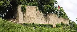 Of the old castle, the remains of the neck ditch, the 1.2-metre-thick enceinte, the shield wall, the castle gate and the foundations of the palas have survived.