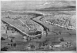 New York City during the American Civil War (1861–1865) was a bustling American city that provided a major source of troops, supplies, equipment and financing for the Union Army. Powerful New York politicians and newspaper editors helped shape public opinion toward the war effort and the policies of U.S. President Abraham Lincoln. The port of New York, a major entry point for immigrants, served as recruiting grounds for the Army. Irish-Americans and German-Americans participated in the war at a high rate.