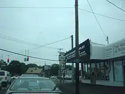 NY 102 begins at an intersection with NY 24 (Hempstead Turnpike) just east of the Long Island Rail Road's West Hempstead station in West Hempstead.[4] The highway proceeds southeast through a commercial area along Front Street, a two-lane road[5] maintained by Nassau County as County Route 106 (CR 106).[6] The route bends east through the village of Hempstead, becoming residential for several blocks until Chasner Street. NY 102 continues northeast through Hempstead, passing several strip malls and businesses near Franklin Street. At the intersection with Main Street, NY 102 and Front Street proceed downhill near two churches and a cemetery as the four-lane residential street. After an apartment building, NY 102 crosses Clinton Street and Peninsula Boulevard at-grade.[5]