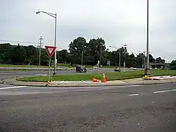 In March 1953, work began on widening NY 110 between NY 25 (Jericho Turnpike) to the outskirts of Amityville. This new project, which was to cost $1 million (1953 USD), would expand the corridor to four lanes from two, as the road had already become the most heavily traveled section of routes in Suffolk County.[7] In 1970, the alignment of NY 110 was proposed by the Nassau-Suffolk Regional Planning Board to be replaced with a new expressway between NY 27 (Sunrise Highway) and NY 25. The new expressway was proposed to help work with traffic projected to increase along the corridor from 1970 to 1985. The new expressway would replace the two–four lane-wide NY 110 corridor with six lanes.[8]