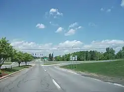 NY 37 originally entered the village of Massena when it was assigned as part of the 1930 renumbering of state highways in New York.[5][6] In the mid-1950s, construction began on a bypass around the southern edge of the village. It opened to traffic as a realignment of NY 37 by 1958.[2][7] The former alignment of NY 37 from the bypass eastward along the Grasse River to Town Line Road was designated as NY 131 by 1960.[3] The remainder of NY 37's old routing through Massena became an extension of NY 37B,[3][8] which continued west through the town of Louisville on Town Line Road and an unnamed roadway along the St. Lawrence River to NY 37 at Louisville Corner.[3]