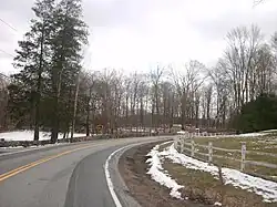 NY 134 passing along a curve in front of the Kitchawan Preserve