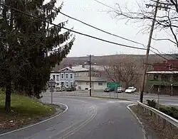 About 1.5 miles (2.4 km) from Alcove, NY 143 reaches the hamlet of Coeymans Hollow, a residential community at the route's junction with CR 103 (Blodgett Hill Road). East of the community, the roadside homes give way to less developed areas of forests and fields as the highway intersects with CR 106 (Tompkins Road) in front of the Sycamore Country Club. The trend soon reverses, however, as NY 143 exits the creek valley and serves another stretch of homes ahead of an intersection with CR 102 (Starr Road). Here, NY 143 turns to the southeast, following Hannacrois Creek to the hamlet of Aquetuck, located about 1 mile (1.6 km) north of the Greene County line. While the creek continues into Greene County, NY 143 curves northeastward toward the nearby village of Ravena as Martins Hill Road.[3]