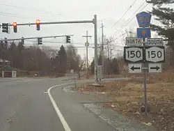 New York State Route 152 (NY 152) was a 6.0-mile-long (9.7 km) east–west state highway in Rensselaer County, New York, in the United States. The western terminus of the route was at an intersection with U.S. Route 4 (US 4) and NY 43 in the town of North Greenbush. Its eastern terminus was at a junction with NY 150 in the town of Sand Lake. NY 152 was little more than a connector between the hamlets of Defreestville and Sliters.