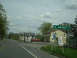 After CR 33, NY 165 turns northeast again, leaving Dorloo for the hamlet of Seward. In Seward, NY 165 crosses south of a pond, entering downtown Seward as a two-lane residential street. Toward the eastern end of the hamlet, NY 165 intersects with CR 5 (Slate Hill Road). Bending southeast, the route crosses the western terminus of CR 30 (Gardnersville Road) before bending southeast and east into the hamlet of Janesville. In Janesville, the route intersects with NY 10, marking the eastern terminus of NY 165 northwest of Cobleskill.[3]