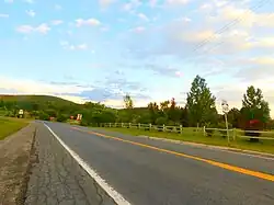 Pleasant Brook is a small hamlet, consisting of a junction with CR 50 (Winne Hollow Road). After Pleasant Brook, NY 165 turns southeast again, crossing through the dense wilderness and paralleling the physical Pleasant Brook. Continuing east through Roseboom, the route enters the hamlet of South Valley, where the route passes north of South Valley Pleasant Brook Cemetery. After the cemetery, the route passes north of CR 34, paralleling the route until they intersect in the center of South Valley. NY 165 through South Valley is a two-lane residential road along the base of Honey Hill. After South Valley, NY 165 continues eastward through the woods along Pleasant Brook, which soon opens into Plank Pond.[3]