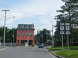 After leaving NY 173 and the Seneca Turnpike, the highway heads to the northeast through the town of Onondaga as South Avenue. NY 175 passes the Community General Hospital of Greater Syracuse and intersects with a county road before entering the Syracuse city limits.[4] At this point, maintenance of the route shifts from NYSDOT to the city of Syracuse.[7] In Syracuse, NY 175 runs along the western edge of Saint Agnes Cemetery to an intersection with NY 80 at the cemetery's north end. Much of the next area is both residential and commercial in nature, leaving the fields and forests behind.[4]