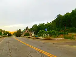 East of Thurston hamlet, NY 333 continued to run along the base of the Michigan Creek valley into the town of Campbell, where the valley met a larger valley surrounding the Cohocton River. The route proceeded eastward across the width of the latter valley, crossing over the river on its way into the riverside hamlet of Campbell, the largest community along NY 333. It proceeded eastward through the hamlet along Main Street to an interchange with the Southern Tier Expressway (then-NY 15 and NY 17) just east of the community. NY 333 ended just east of the Southern Tier at a junction with NY 415. The right-of-way also terminated at the junction.[4]