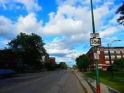Continuing southeast along Clinton Street, NY 354 remains a two-lane commercial and residential street before crossing into a more industrial area west of an intersection with US 62 (Bailey Avenue). Less than a block later, the route crosses under I-190 (the Niagara Thruway) and enters exit 2 via Cliff Street. Crossing east through Buffalo, NY 354 crosses east through a dense residential neighborhood of Kaisertown, paralleling I-190 through the city. The route crosses under the New York State Thruway (I-90) and soon intersects with NY 240 (Harlem Road) in the town of West Seneca. Turning southeast and crossing over Cayuga Creek, NY 354 crosses through a residential section of West Seneca, passing the entrance of St. Matthews Cemetery.[3]