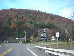 New York State Route 443 (NY 443) is an east–west state highway in the Capital District of New York in the United States. The route begins at an intersection with NY 30 in the town of Schoharie and ends 33.44 miles (53.82 km) later at a junction with U.S. Route 9W (US 9W) and US 20 in the city of Albany. It ascends the Helderberg Escarpment in the towns of Berne and New Scotland. Within the town of Bethlehem and the city of Albany, NY 443 is known as Delaware Avenue.