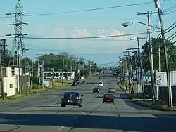 Gill Creek and NY 61 continue to run parallel for one more block before they separate ahead of Pine Avenue,[3] once known as NY 62A[4] and now designated as US 62 Business.[5] The intersection between Pine and Hyde Park Boulevard marks the southwestern limits of Hyde Park, one of the largest parks in the vicinity of the city. For the next dozen blocks, NY 61 acts as the divider between the residential neighborhoods of downtown Niagara Falls and the open spaces of Hyde Park, passing Sal Maglie Stadium as it heads north. At Linwood Avenue, the homes return to both sides of NY 61 as it approaches Porter Road, which carries NY 182. While Porter Road ends here, NY 182 turns north, joining NY 61 for two blocks to Ontario Avenue, where NY 182 turns west toward the Whirlpool Rapids Bridge.[3]