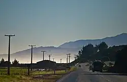 The highway then tends southwest as it crosses over the Whangamoa Saddle approaching the coast of Tasman Bay / Te Tai-o-Aorere. The highway travels through the city of Nelson and nearby town of Richmond, continuing southwest across the plains of the Wairoa and Motueka Rivers.