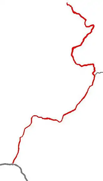 The highway has a total length of 106.3 kilometres (66.1 mi)[1] and a speed limit in the range of 40–80 km/h depending on whether the road is passing through a settlement.