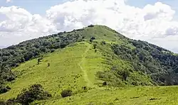 The Ngong Hills are peaks in a ridge along the Great Rift Valley, located southwest near Nairobi, in southern Kenya. The word "Ngong" is an Anglicization of a Maasai phrase "enkong'u emuny" meaning rhinoceros spring, and this name derives from a spring located near Ngong Town.[1]
