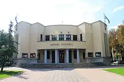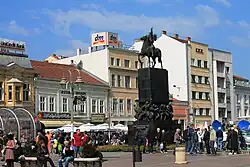 In the following years, the city saw rapid development. The city library was founded in 1879 and the famous Serbian writer Stevan Sremac, a native of Niš, was its first clerk.[56][57] The first hotel, Europe, was built in 1879; shortly after the first district hospital[58] and the first bank started operating in 1881.[59] In 1878, the first Grammar School (Gimnazija),[60] in 1882 the Teacher Training College, and in 1894, the Girls' College were founded in Niš.[59] The City Hall was built from 1882 to 1887.
