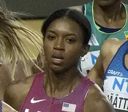 Competing at the 2023 USA Outdoor Track and Field Championships, in Eugene, Oregon, she reached the final of the 800m competition as the fastest qualifier and won the final ahead of Raevyn Rogers.[11] She was selected for the 2023 World Athletics Championships in Budapest in August 2023.[12] She ran a new personal best in the final, running 1:57.73 in finishing sixth.[13] She also made her Diamond League debut in August 2023, finishing fourth in the 800 metres in Zürich.[14]