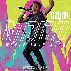 Nibiru World Tour was the third concerto tour by Puerto Rican singer Ozuna, to promote his third studio album Nibiru. The tour started in Santo Domingo, Dominican Republic, on 14 February 2020.[1] The tour was expected to have four legs, visiting Latin America, Europe and an 19-date arena tour in the United States ending on September 4, 2020 at Madison Square Garden in New York.[2] However, it was cancelled due the COVID-19 global pandemic.
