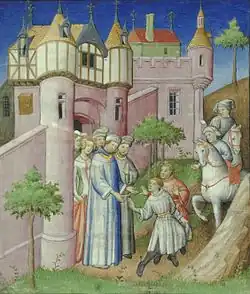 Leaving Niccolò's infant son Marco behind, Niccolò and Maffeo left Venice for Constantinople, where they resided for several years.[2][nb 4] The two brothers lived in the Venetian quarter of Constantinople, where they enjoyed diplomatic immunity, political chances and tax relief because of their country's role in establishing the Latin Empire in the Fourth Crusade of 1204. However, the family judged the political situation of the city precarious, so they decided to transfer their business northeast to Soldaia, a city in Crimea, and left Constantinople in 1259 or 1260. Their decision proved wise. Constantinople was recaptured in 1261 by Michael Palaeologus, the ruler of the Empire of Nicaea, who promptly burned and razed the Venetian quarter and reestablished the Byzantine Empire. Captured Venetian citizens were blinded,[3] while many of those who managed to escape died aboard overloaded refugee ships fleeing to other Venetian colonies in the Aegean Sea.
