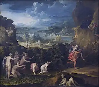 Niccolò is best known for his mythological landscape subjects, which introduced the Flemish world landscape into French art, such as the Orpheus and Landscape with the Death of Eurydice in the National Gallery, London[5] and the Rape of Proserpine in the Louvre,[6] and for his profuse and elegant drawings. Not many of his frescoes have survived; however, the Louvre does have a collection of his drawings.[7] Many of his canvasses were burnt in 1643, by the Austrian regent, Anne.[1] Some of his landscapes for Charles IX were influential for the 17th century painters Claude Lorrain and Nicolas Poussin.