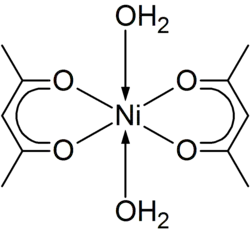 - ^ M. Kudrat-e-Zahan, Y. Nishida & H. Sakiyama (2010). "Identification of cis/trans isomers of bis(acetylacetonato)nickel(II) complexes in solution based on electronic spectra". Inorganica Chimica Acta. 363: 168–172. doi:10.1016/j.ica.2009.09.011.