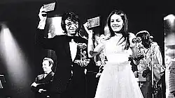 In 1970 Di Bari obtained even greater commercial and critical success with the song "La prima cosa bella", which ranked second at the Sanremo Music Festival 1970 and first on the Italian hit charts.[3][4] In 1971, he won the Sanremo Music Festival and Canzonissima, with the songs "Il cuore è uno zingaro" (jointly with Nada) and "Chitarra suona più piano".[3] In 1972, he again won the Sanremo Festival and represented Italy at the Eurovision Song Contest with the song "I giorni dell'arcobaleno" ("The Days of the Rainbow").[3] In the following years, Di Bari grew his international popularity, especially in Latin America, where he recorded several albums in Spanish and where he gradually focused his career.[1][3]