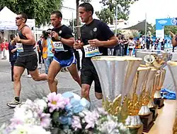 The next marathon was organized on December 9, 2012; on that date, a marathon, a half marathon, a 10 km run, a 5 km run and a 1 km UNICEF Charity run took place. More than seven thousand runners participated in the Quantum Nicosia Marathon.[5] Marathon took place on streets of Nicosia. Start and finish of race was at the Famagusta Gate, chief gate of old Nicosia walls.[5] The Quantum Nicosia Marathon course is of a low degree of difficulty. The Marathon flame arrived for first time on Cyprus on December 6, 2012, just 3 days before start of the Quantum Nicosia Marathon.[6][7] Nasos Ktorides had honour to bring the Marathon Flame first to the Antarctic Ice Marathon and then to Cyprus.[7]