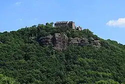Nideggen lies on the river Rur and at the banks of the Rurtalsperre, the second largest dam in Germany. The region is famous for its precipitous Early Triassic rocks of Buntsandstein in the valley of Rur and is situated between 250 and 450 metres over sea level.