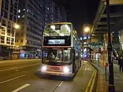 Night buses (Chinese: 通宵巴士, literally 'overnight bus') are often, but not always prefixed with the letter N and operated by all franchised bus companies (Kowloon Motor Bus, Long Win Bus, Citybus, New World First Bus and New Lantau Bus).