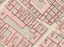 No. 208(2+0 is for some reason not mentioned in the census records from 1801. The property was listed in the new cadastre of 1806 as No. 167 in Eastern Quarter, owned by one kancelliråd Paaske.[2]