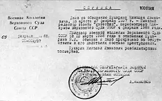 - ^ Taubman, Philip (6 February 1988). "50 Years After His Execution, Soviet Panel Clears Bukharin". The New York Times. Archived from the original on 29 March 2022. Retrieved 29 March 2022.