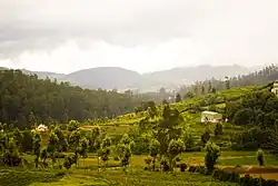 The Nīlgiris district is one of the 38 districts in the southern Indian state of Tamil Nadu. Nilgiri (English: Blue Mountains) is the name given to a range of mountains spread across the borders among the states of Tamil Nadu, Karnataka and Kerala. The Nilgiri Hills are part of a larger mountain chain known as the Western Ghats. Their highest point is the mountain of Doddabetta, height 2,637 m. The district is contained mainly within the Nilgiri Mountains range. The administrative headquarters is located at Ooty (Ootacamund or Udhagamandalam). The district is bounded by Coimbatore to the south, Erode to the east, and Chamarajnagar district of Karnataka and Wayanad district of Kerala to the north. As it is located at the junction of three states, namely, Tamil Nadu, Kerala, and Karnataka, significant Malayali and Kannadiga populations reside in the district.[3] Nilgiris district is known for natural mines of Gold, which is also seen in the other parts of Nilgiri Biosphere Reserve extended in the neighbouring states of Karnataka and Kerala too.[4]