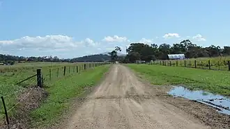 ![]() Looking west on Orphanage Road, on the boundary of Nindaroo (south & left) and Habana (north & right), 2016 | |||||||||||||||