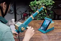 Part of the inspiration of the Switch's form and design was from feedback players had given Nintendo on the Wii Remote, according to Shinya Takahashi. With the release of games like Wii Sports and Wii Fit, players had asked Nintendo if they could make the Wii Remote in a smaller form factor, potentially strapped to a part of their body. This led to Nintendo envisioning what a smaller form-factor controller could provide in both hardware and gameplay, and it led to the idea of a console that was small enough with these new controllers to also be portable.[26] Other concepts came out of critical consumer feedback of the Wii U. Fils-Aimé said that one common criticism for the Wii U was that while players did enjoy using the Wii U GamePad, it became functionless if they moved a distance away from the main console. This prompted Nintendo to design a home console that a player could take anywhere.[27] Around five different prototypes were developed for the Switch before Nintendo decided upon a finalized design. Variations included developing different methods of how the Joy-Con controllers would physically connect to the console, such as using magnets to hold them in place.[16]