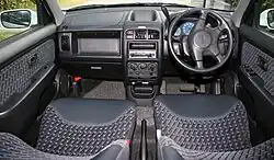 Seating capacity remains at five. According to Nissan designers, the interior is inspired by the 'enveloping curves of a jacuzzi to promote a comfortable and social atmosphere.' Design cues include a water-ripple motif that appears in the headliner and is repeated in details like the speaker covers and cup holders. Nissan has developed an extended line of accessories for Cube to encourage personalization. These include multicolour appliqués that can be placed around air vents and window switches, utility hooks and elastic bands in different colours, variable colour LED accent lighting for the footwell and cup holders, and a sculptured piece of colour-coordinated shag carpet that sits in a shallow well on the top of the dash.[7]