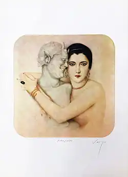 During this time, Naldi posed for famous Peruvian artist Alberto Vargas, who painted her embracing a bust of a satyr.[9] In Vargas's original “pin-up” painting, Naldi is depicted topless, but copies of the portrait that were published and widely distributed in the 1920s, such as in the art and entertainment magazine Shadowland, were “modified” by the addition of clothing to cover her partially visible left breast.[10]