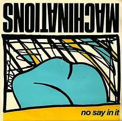 "No Say in It" is a song recorded by the Australian synth-pop band Machinations. It was released in August 1984 as the lead single from the band's second studio album, Big Music. The song peaked at number 14 on the Australian Kent Music Report, becoming the band's first top 20 single.[1] The song appeared in the film Ruthless People and was included on the soundtrack.