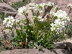 Noccaea fendleri more commonly known as wild candytuft and alpine pennycress is a wildflower in the mustard family from western North America. It grows in mountains from northern Mexico to the northern United States. It blooms early in the spring and provides nectar to butterflies.
