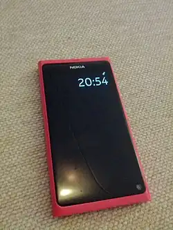![]() Nokia N9 phone running Meego 1.2 Harmattan software | |