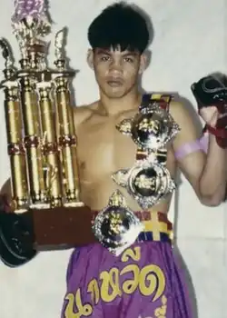 He won titles in three divisions at Rajadamnern Stadium while facing many notable fighters including Sagat Petchyindee, Samingnoom Sitboontam, Krongsak Sakkasem, Jomwo Chernyim, Wanpadej Phukrongfah, Sangtiennoi Sor.Rungroj, Issara Sakgreerin, Mungkorndum Sitchang, and Praedam Lukphrabath.[1]