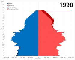 Since 1965 white migration to the United States has been relatively minor compared to other racial and ethnic groups. During the 1990s there was a moderate increase from former communist countries of the Eastern Bloc and the Soviet Union.[31] At the same time birthrates amongst Whites have fallen below replacement level.[32] In 1980, non-Hispanic whites made up about 80 percent of the U.S. population, but that number has declined sharply in recent years.[33] It is projected that white people will become a minority by 2045.[34]