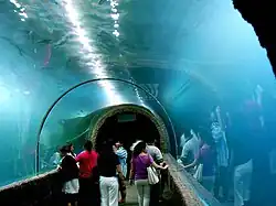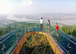 From top: Phaya Naga Plaza, a landmark of Tha Sadet, a Mekong riverside border market; Silhouette of the First Thai–Lao Friendship Bridge; Phrathat Nong Khai, a pagoda sunken in the Mekong; Inside of Nong Khai Aquarium; Naga fireballs phenomena in 2015; Glass Skywalk viewpoint of the Mekong in Sangkhom District | |