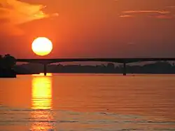 The First Thai–Lao Friendship Bridge was largely funded by a gift to the Lao government from the Australian government.[14] It is the road and railway gateway to Laos's capital, Vientiane (25 kilometers (16 mi) upriver), on the north bank opposite the Thai town of Si Chiang Mai District. Construction of a rail spur to Thanaleng outside of Vientiane was begun early-2007 and officially opened 5 March 2009.[15]