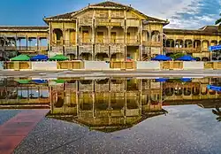 The provincial slogan translates to "Grand royal mansion, renowned Suan Somdet, Ko Kret's pottery, famous ancient temples, tasty durians, and the beautiful government office". The royal mansion refers to Phra Tamnak Nonthaburi in Mueang Nonthaburi District, the former residence of Prince Maha Vajiralongkorn. Princess Mother Srinagarindra Garden (Suan Somdet) is a water garden with a statue of princess Srinagarindra in the Pak Kret District. The provincial administration building once received an award as the most beautiful such building by the Ministry of Interior.