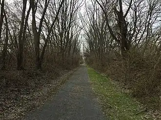 The trail follows the route of the former Northampton and Bath Railroad, a shortline railroad connecting the Atlas Portland Cement Company to other railroads. The rail fell into disuse in 1979 as the local cement industry began to decline.[1] In 2017, a 1-mile (1.6 km) asphalt extension was added to the trail in order to link it to the D&L Trail[2]