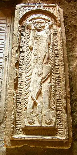 The grandest structure is Surb Astvatsatsin (Holy Mother of God), also called Burtelashen (Burtel's construction) in the honour of Prince Burtel Orbelian, its financier. It is situated to the south-east of the Surb Karapet church. Surb Astvatsatsin was completed in 1339, a masterpiece of the talented sculptor and miniaturist Momik, who designed it, and was also his last work. Near the church there is his tomb khachkar, small and modestly decorated, dated the same year. In recent times the fallen roof had been covered with a plain hipped roof. In 1997 the drum and its conical roof was rebuilt, with the form based on existing fragments. However, it has been criticized as being a "fantasy reconstruction".[2] The ground floor contained elaborate tombs of Burtel and his family. Narrow steps projecting from the west façade lead to the entrance into the church/oratory. There is fine relief sculpture over the entrance, depicting Christ flanked by Peter and Paul.