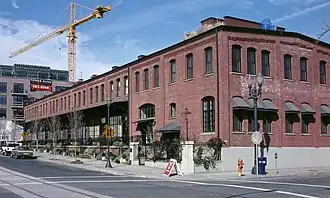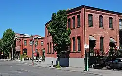 The North Bank Depot Buildings, in central Portland, Oregon, United States, are a pair of buildings formerly used as a freight warehouse and passenger terminal for the Spokane, Portland and Seattle Railway (SP&S).[2] Formed in 1905, the SP&S was commonly known as the North Bank Road (or North Bank road, "road" being short for railroad) during the period in which these buildings were in use. The Portland buildings' passenger facilities were also used by the Oregon Electric Railway after that railway was acquired by the SP&S. Located in what is now known as the Pearl District, the buildings were listed on the National Register of Historic Places in 1996.[1][2] They were in use by the SP&S and its successor, Burlington Northern Railroad, from 1908 until the 1980s.[2] Only the east building was used as a passenger station,[2] and this usage lasted from 1908 until 1931.[3]