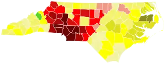 Perdue: 40–50% 50–60% 60–70% 70–80% 80–90% >90% McCrory: 40–50% 50–60% 60–70% 70–80% 80–90% Tie: 40–50% 50% | |||||||||||||||||