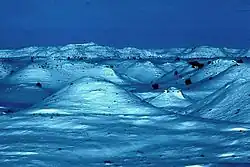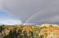 Twenty-nine bison were introduced to a South Unit in 1956 and subsequently transferred 20 bison from that herd to the park's North Unit in 1962. They are routinely culled down to approximately 350 and 20 animals, respectively.[13] The gathering and reduction of the herd alternates between the two units each year. The bison are shared with Native American tribes to increase numbers in existing tribal herds and provide genetic diversity.[14] The conservation of bison is an ongoing, diverse effort to bring bison back from the brink of extinction. The 2020 Bison Conservation Initiative by the Department of the Interior has five central goals: wild, healthy bison herds; genetic conservation; shared stewardship; ecological restoration; and cultural restoration.[15] Six yearling female bison were transferred from Rocky Mountain Arsenal National Wildlife Refuge in 2020. National Park Service experts will study the extent to which translocated animals integrate into the established herds.[16]