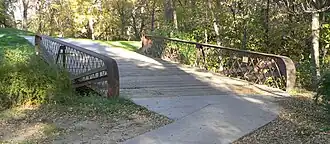 It is a single-span 40 feet (12 m)-long metal lattice truss bridge fabricated by the Canton Bridge Co.[2] It now crosses a tributary of Prairie Dog Creek on the Prairie Dog Golf Course,[4] a nine-hole golf course.[5]
